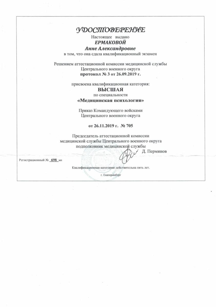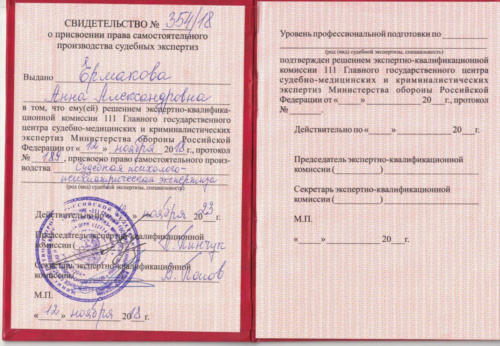 с 2016 года является медицинским психологом – экспертом отделения судебно-медицинской экспертизы города Новосибирска ФГКУ «111 Главный государственный центр судебно-медицинских и криминалистических экспертиз» МО РФ;