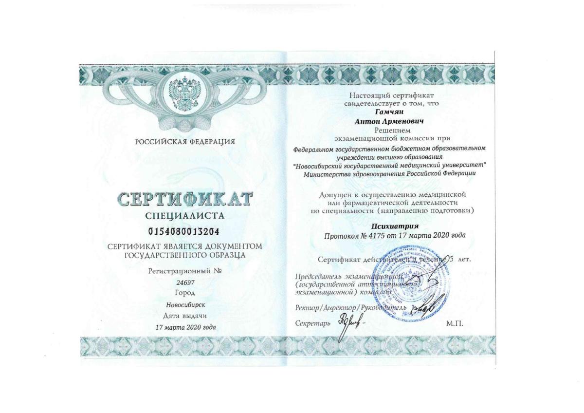 Врач-психиатр Гамчян Антон Арменович в Новосибирске - записаться на прием l Клиника Анима