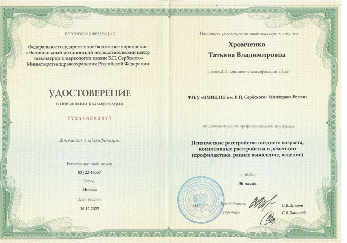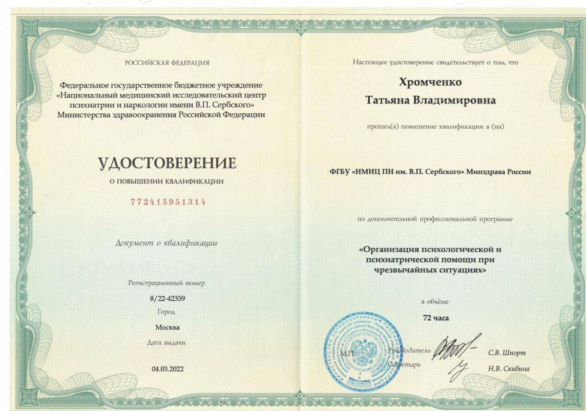 Окончила клиническую интернатуру в 2003 году по специальности детская психиатрия;