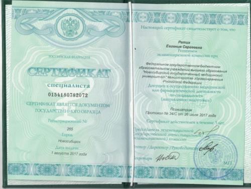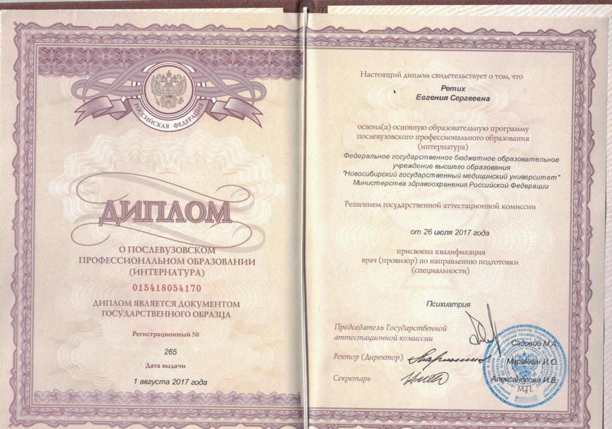 • ГБОУ ВПО НГМУ Интернатура по специальности «Психиатрия».