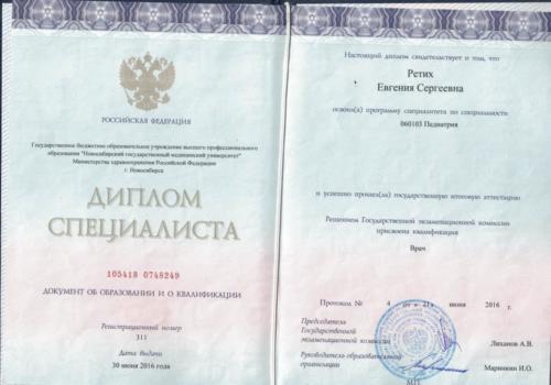 • ГБОУ ВПО НГМУ Педиатрический факультет, врач;