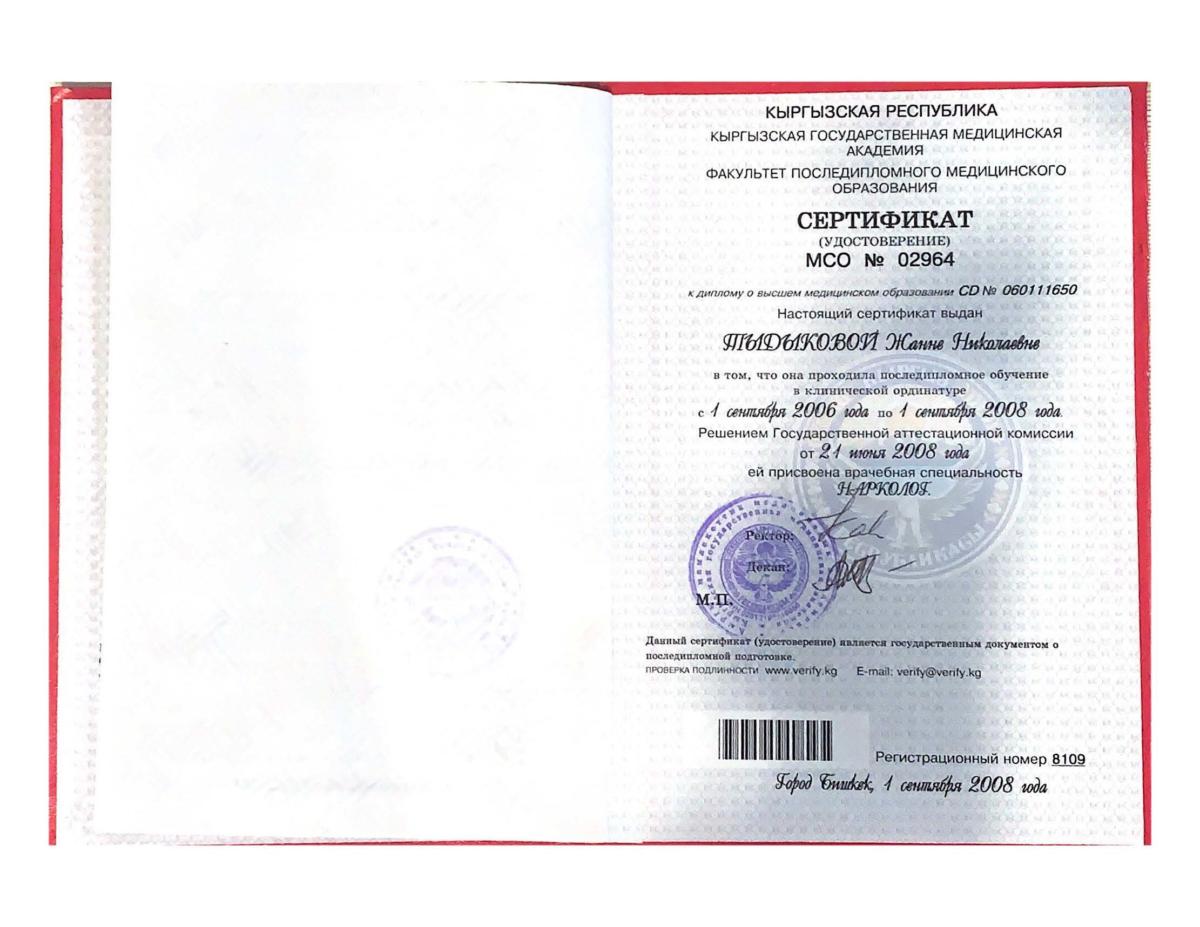 • 2008 — клиническая ординатура КГМА по наркологии;