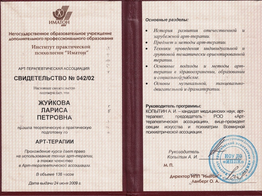 2010 Использование арт -терапевтических техник в психологии, педагогике и медицине ИМАТОН Спб (В.И. Копытин)